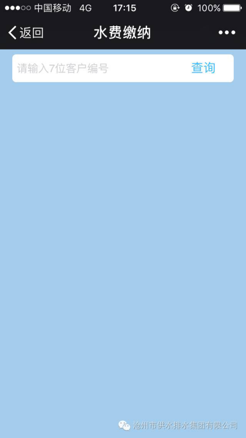 微信繳水費:用戶只需通過搜索“滄州市供水排水集團有限公司”微信公眾號,加關注后點擊“我的用水”—“水費繳納”—輸入“客戶編號”后進行查詢和繳納水費。用戶通過微信公眾號不僅能第一時間了解用水信息,還可獲知停水通知、政策法規等訊息。